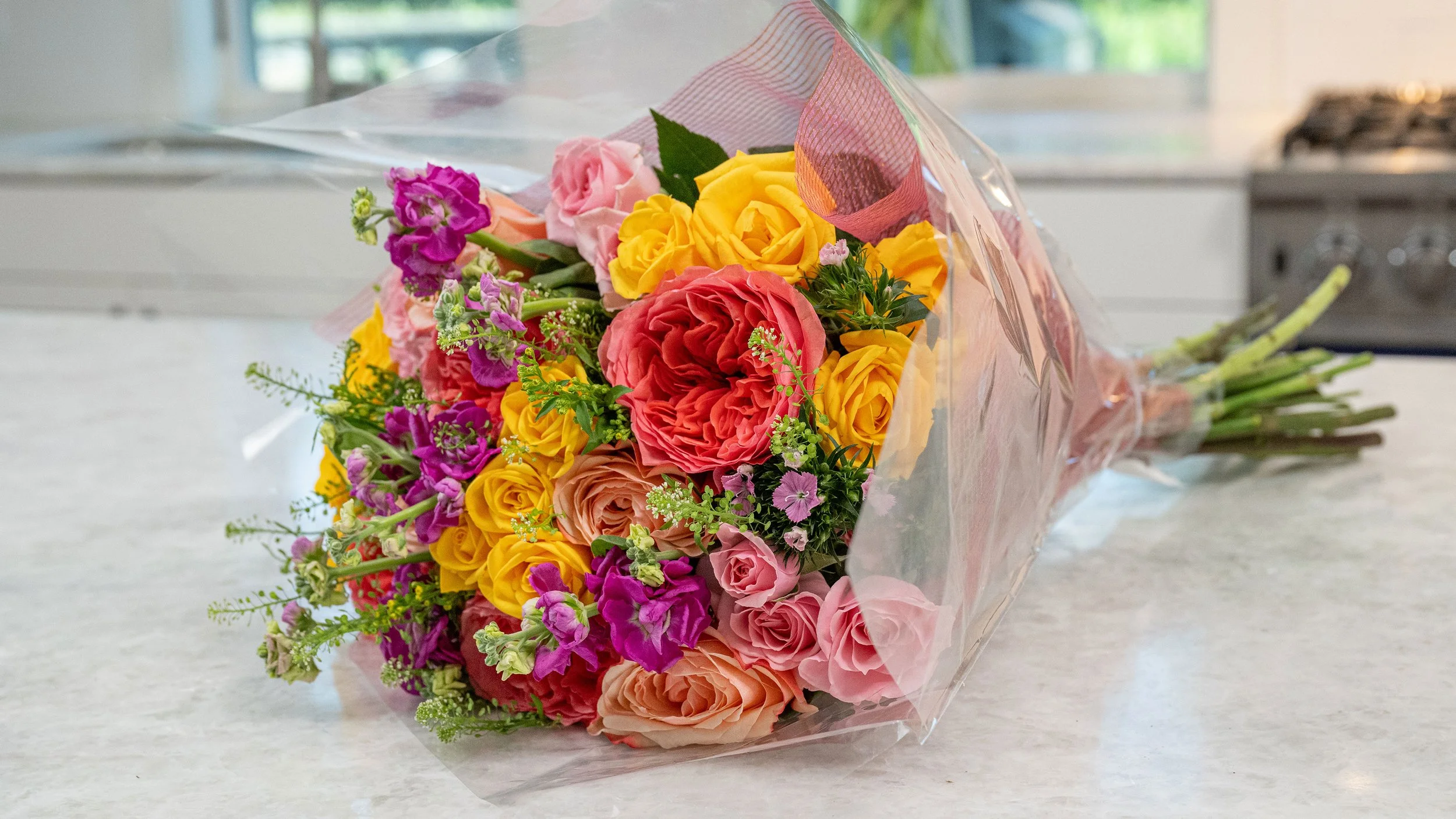 I’m arranging this bouquet - in a simple tall cube vase… and sharing all my favorite tips- for arranging… enjoying the process- and also tricks for making your bouquet last longer… Watch the Video here!