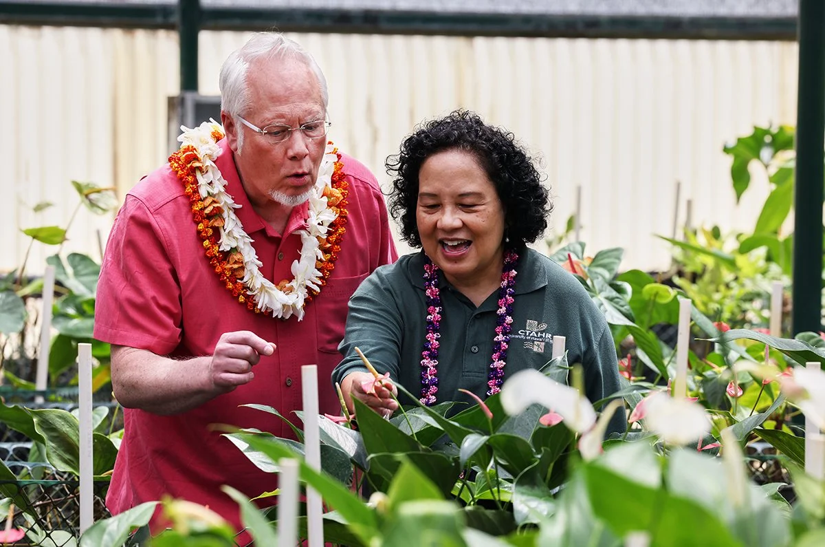 Dr. Tessie- informs J and shares so much about the Beautiful Anthurium they work with and hybridize at the Magoon Research Station… learn more Here!