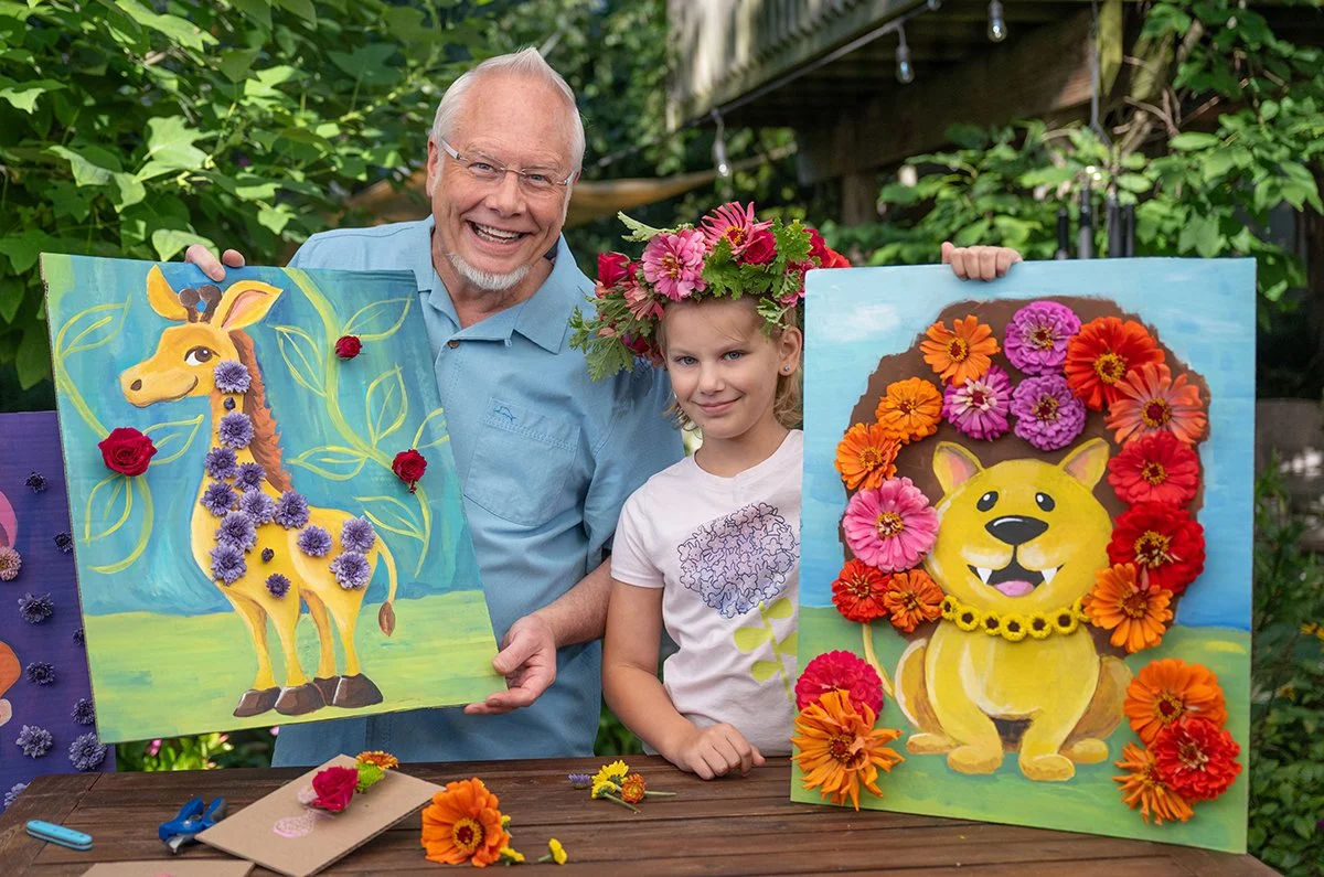 J and Flower Friend Emily Randall - create Fun Flower Animal Portraits on this Episode of “J Schwanke’s Life in Bloom” - Flower Crafts- Emily is a great sport- and did a wonderful job creating several of these Fun Flower Enchanted Animal Portraits!