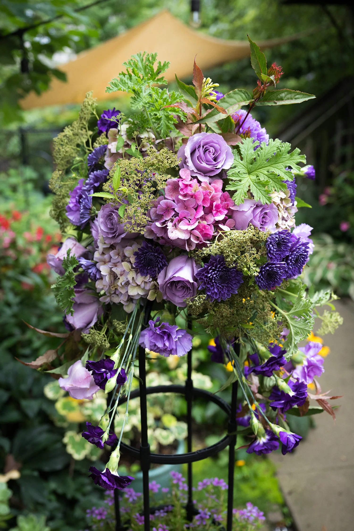 J mixes Fresh Flowers and Bloom Plants to create this advanced topiary featuring Suntory Flowers and Florigene Flowers- Watch Now!