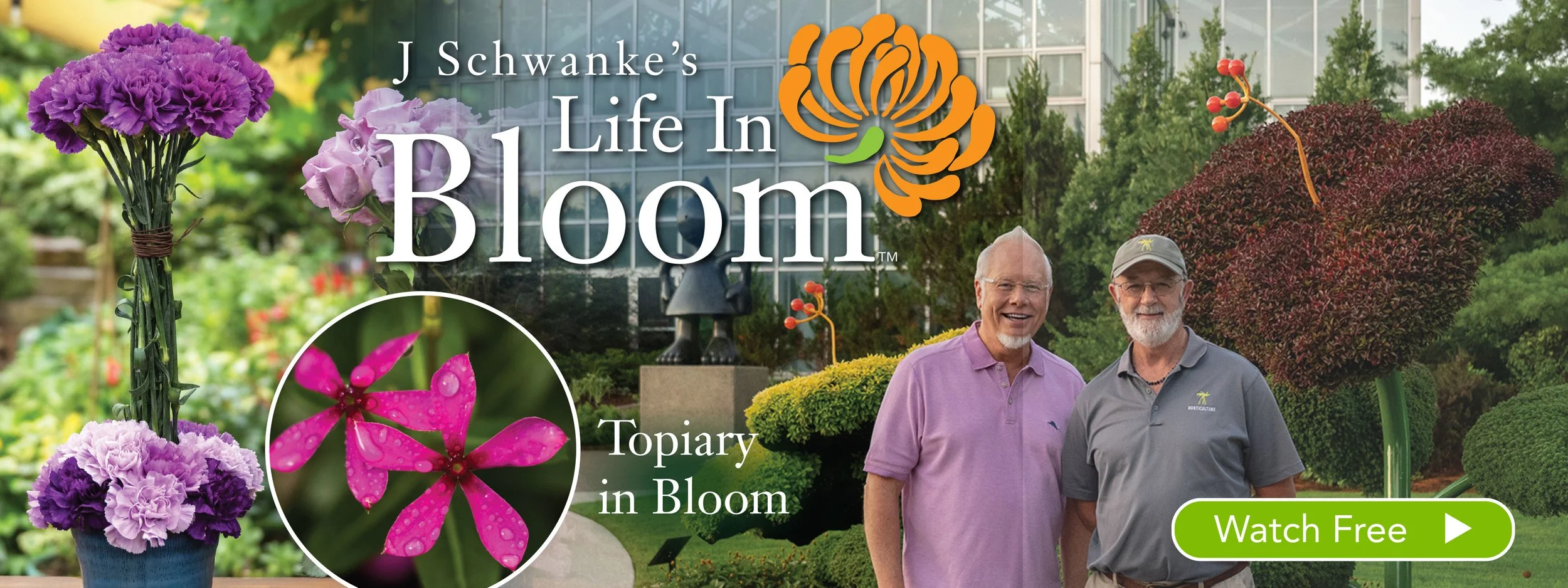 We’re so Excited for the Premiere of Season 8 of “J Schwanke’s Life in Bloom” On Public Television- distributed by our Friends at American Public Television- and Sponsored by our Wonderful Underwriters: CalFlowers- Albertsons Companies - Passion Roses and Suntory Flowers! We are also excited to welcome back- our Closed Caption Funder- FabulousFlorals.com - Watch TOPIARY IN BLOOM the Season 8 premiere here Now!
